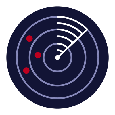 Así funciona también Guardian360 Canary. Si un intruso logra penetrar la red a pesar de todas las medidas de seguridad y escaneo, nuestro Canario activa una alarma silenciosa que notifica de inmediato a tu organización.